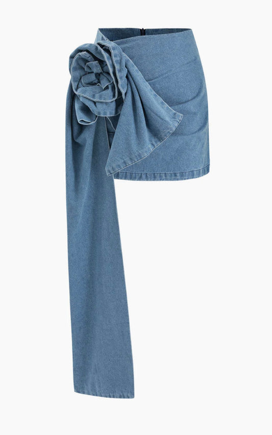 Denim Rose Statement Mini Skirt